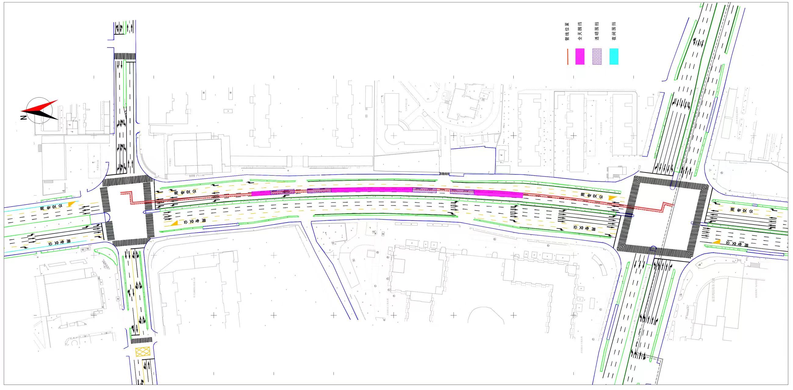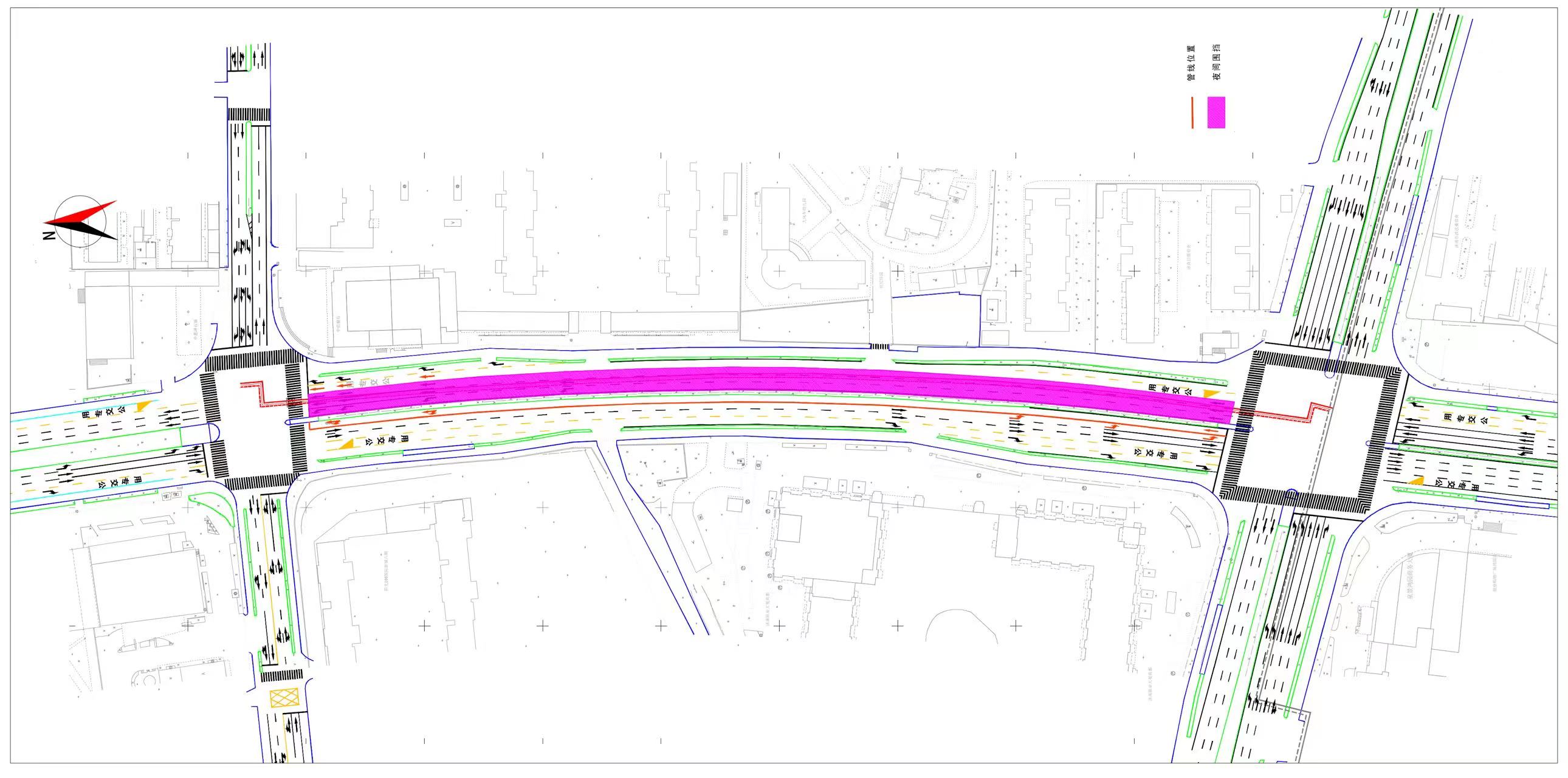 夜間施工對陽光新路(臥龍路-劉長山路)中央隔離綠化帶東側(cè)第一條、第二條、第三條車道進(jìn)行圍擋施工,整體占用道路寬度9.2米,夜間施工借用中央隔離綠化帶西側(cè)第一條車道南向北通行,南向北利用剩余2條車道通行。